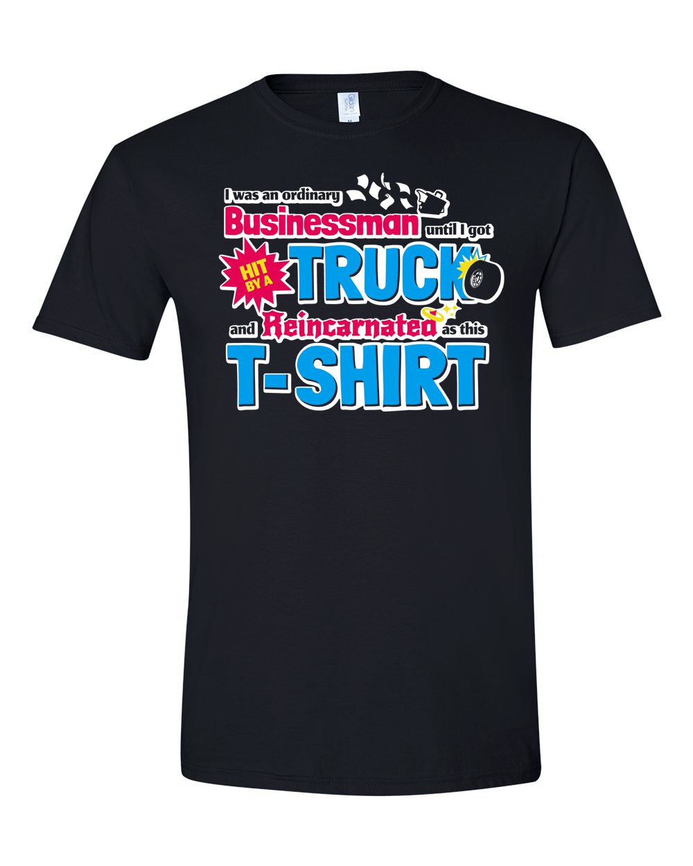 "I was an ordinary businessman until I got hit by a truck and reincarnated as this t-shirt..."