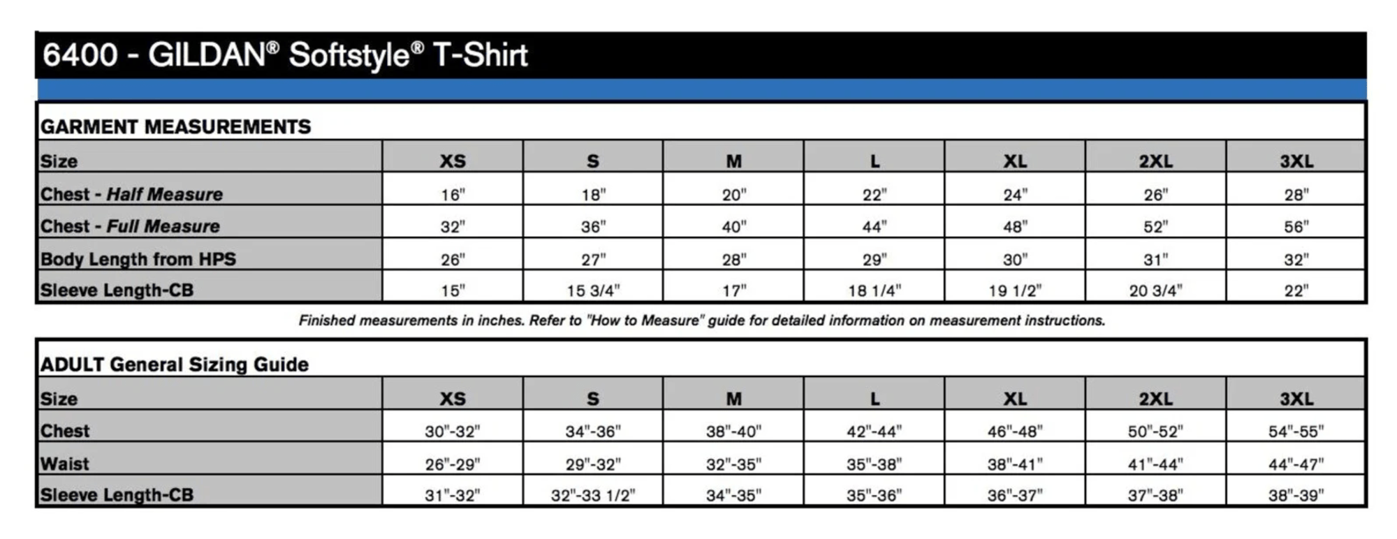 The design features silk screen printing, so it is recommended to wash/dry inside out. The shirts are Gildan Softstyle and made of 100% cotton, so expect a small amount of shrinkage the first time you wash it. The sizing runs from small to 3XL. Please check the size chart for measurements before ordering, as no returns or exchanges are allowed for sanitation purposes.