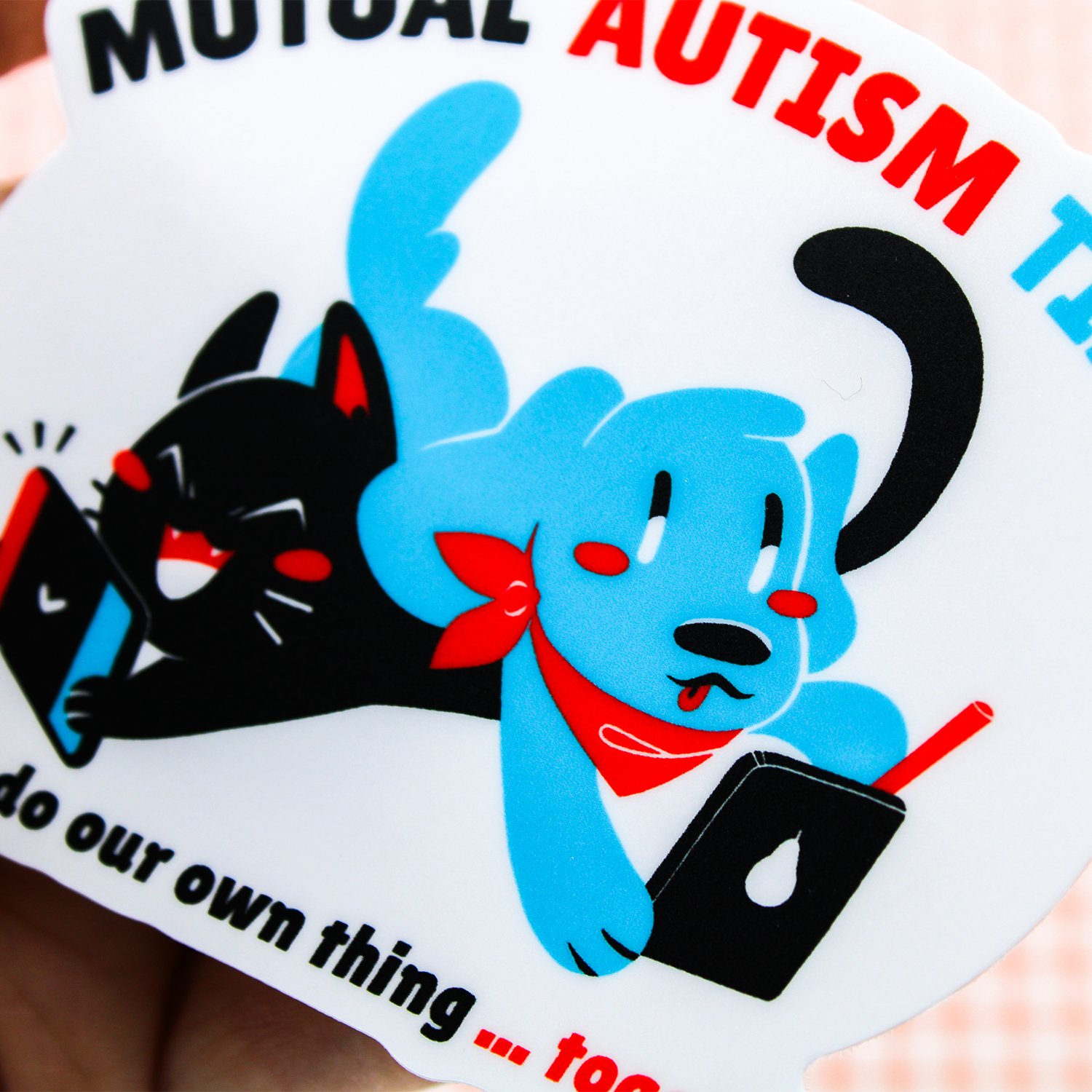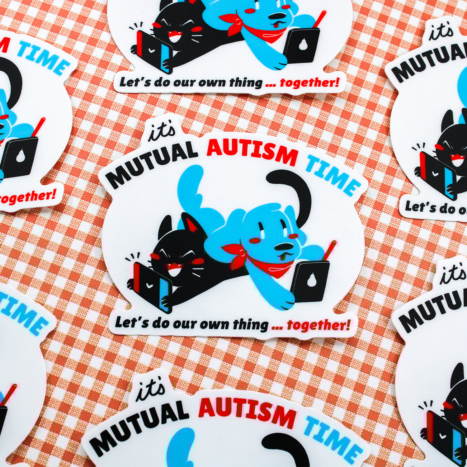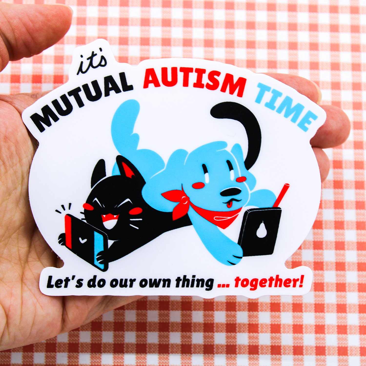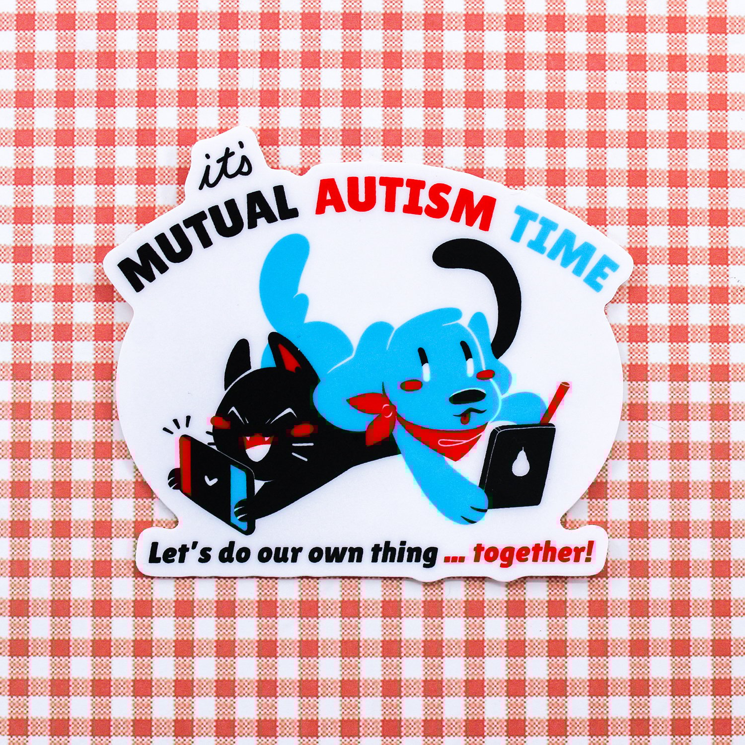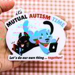 Love doing your own thing in the same room with your partner, friend or family member? This may be the sticker for you! The Mutual Autism Time sticker is an ode to parallel play!